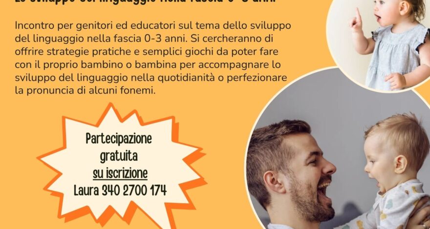 Lo sviluppo del linguaggio nella fascia 0-3 anni condotto da dott.ssa Nadia Pavan, logopedista Lunedì 11 maggio 2026 – 17:30-19:30 Presso Asilo Nido “Girotondo”, Romano d’Ezzelino Incontro per genitori ed educatori sul tema dello sviluppo del linguaggio nella fascia 0-3 anni. Si cercheranno di offrire strategie pratiche e semplici...